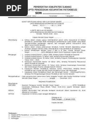 Wadah tersebut adalah komite sekolah. Bahwa dukungan dan komitmen masyarakat terhadap penyelenggaraan pendidikan yang bermutu perlu didorong untuk bersinergi dalam suatu wadah komite sekolah. Sk komite sekolah smp 2020 : Update 2020 contoh sk komite sekolah format microsoft word. Contoh format ini sanggup dimanfaatkan oleh guru dalam proses atau sanggup dimanfaatkan sebagai . Dasar hukum pembentukan komite sekolah adalah kepmendiknas nomor 044/u/2002. Keputusan menteri pendidikan nasional nomor 044/u/2002, tentang dewan pendidikan dan komite sekolah dirjen pendidikan dasar dan menengah3. Pembentukan komite sekolah dari jenjang sd,smp,sma harus membuat untuk kepentingan legalitas terhadap pengukuhan komite sekolah terhadap masyarakat yang berada . Contoh surat keputusan komite sekolah untuk sd, smp, atau sma dalam format word. Download contoh sk komite sekolah format terbaru di sini. Contoh sk komite sekolah untuk jenjang sd/mi, smp/ mts, sma/ma dan smk. Download contoh sk komite sekolah sd smp sma smk format microsoft word. Ditulis oleh seputar desa kamis, 04 februari 2021 tambah komentar edit.